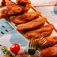 Філе куряче, гірчиця американська, мед, соєвий соус, сіль кухонна, часник сушений, паприка копчена, яйце куряче, вершки 15%, часниковий перець, сухарі панірувальні, борошно пшеничне вищого сорту.
